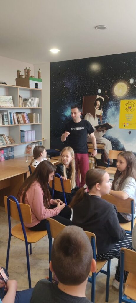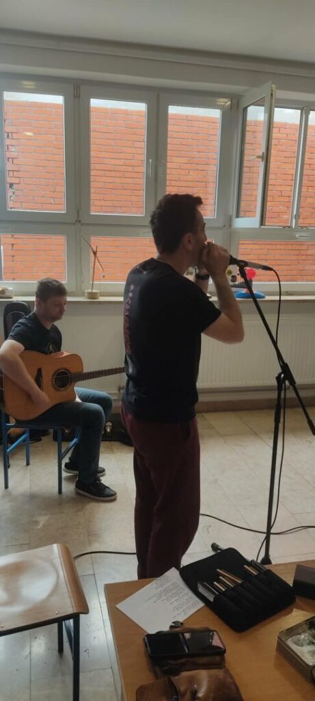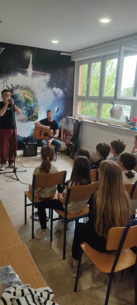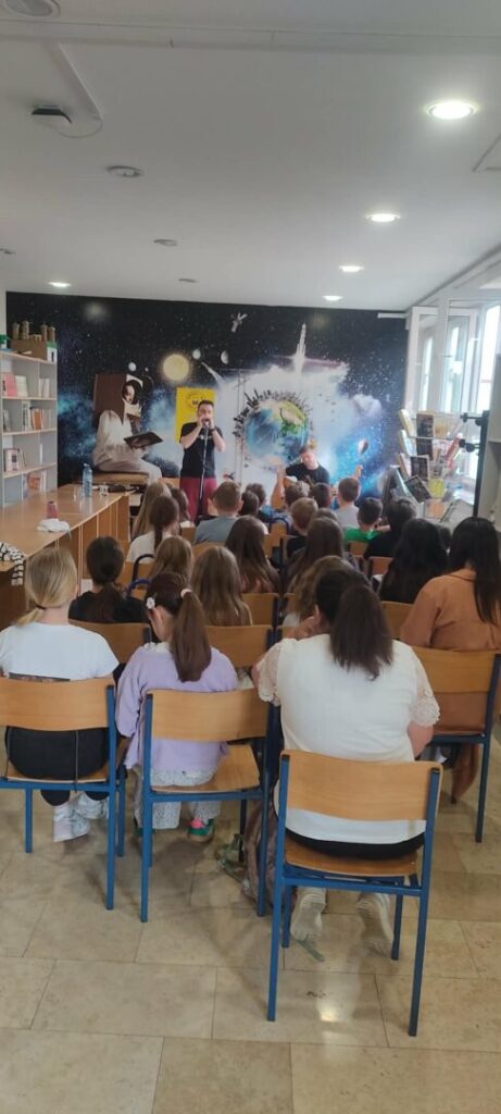 Svi učenici razredne nastave, zajedno s učiteljicama i knjižničarkom prisustvovali su na jedinstvenom i zabavnom putovanju nastanka glazbe. Uz sviranje na usnoj harmonici i uz odličnu pratnju Roberta na akustičnoj i električnoj gitari, gospodin Tomislav definirao nam je pojam instrumenta usne harmonike, objasnio glavne vrste usnih harmonika i još mnogo toga.