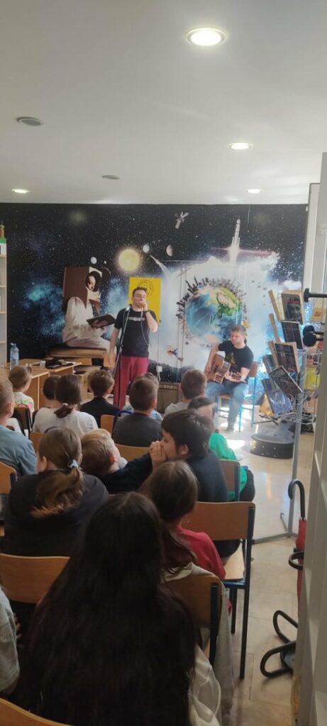 U sklopu projekta “Ruksak pun kulture” , u knjižnici naše škole gostovali su poznati hrvatski blues glazbenik Tomislav Goluban i njegov suradnik, gitarist Robert Bašić.