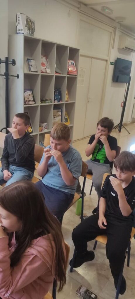 Učenici 3. i 4. razreda potom su sudjelovali na radionici sviranja usne harmonike te je tom prigodom svaki učenik dobio na dar usnu harmoniku.