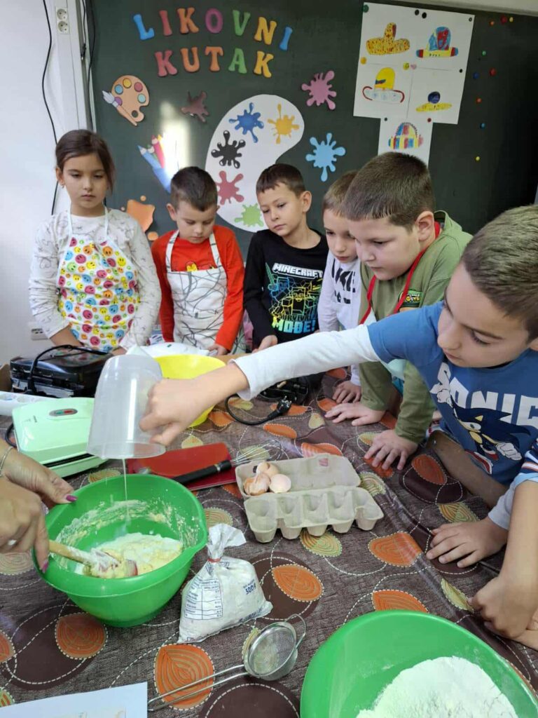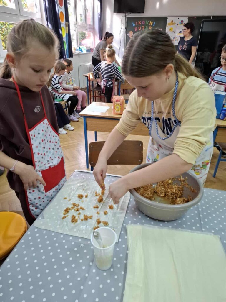 U srijedu je sve posvetio župnik Ivica Zrno, a prikupila se i hrana za humanitarnu akciju koju je organizirala vjeroučiteljica Marina Šijaković. Na kraju smo zajedno jeli kolače koje smo napravili.