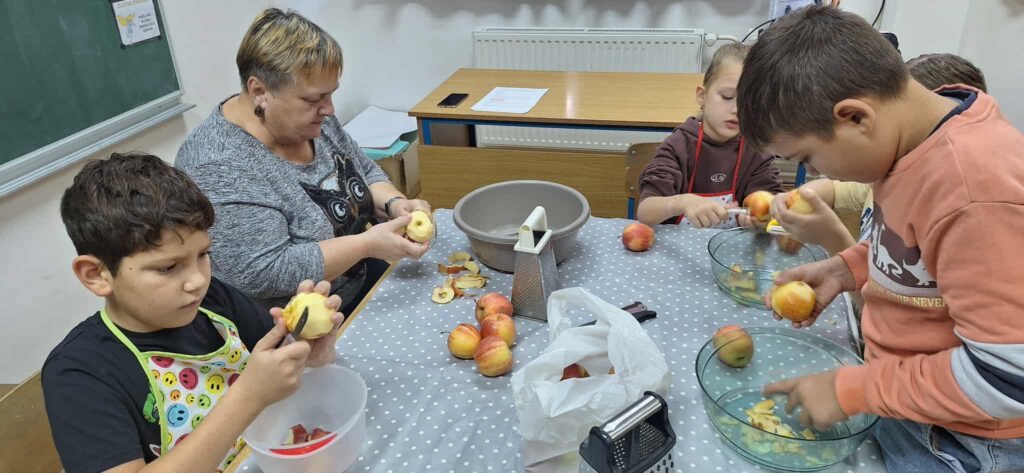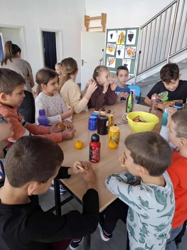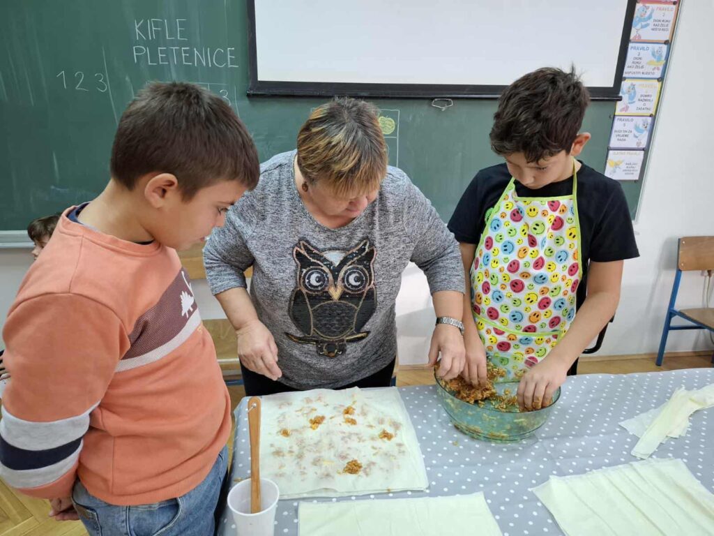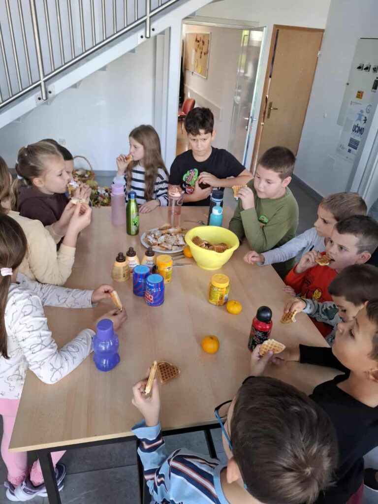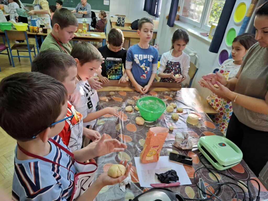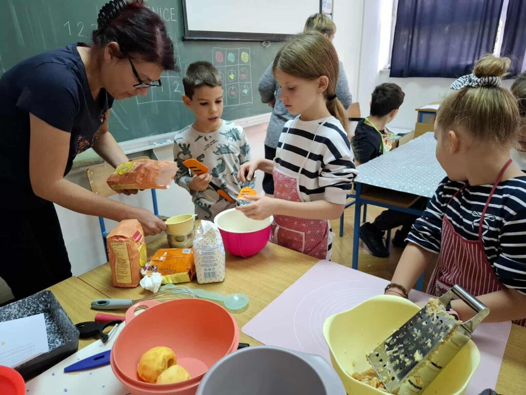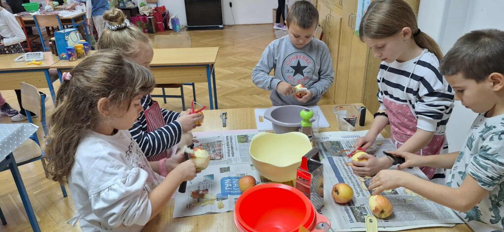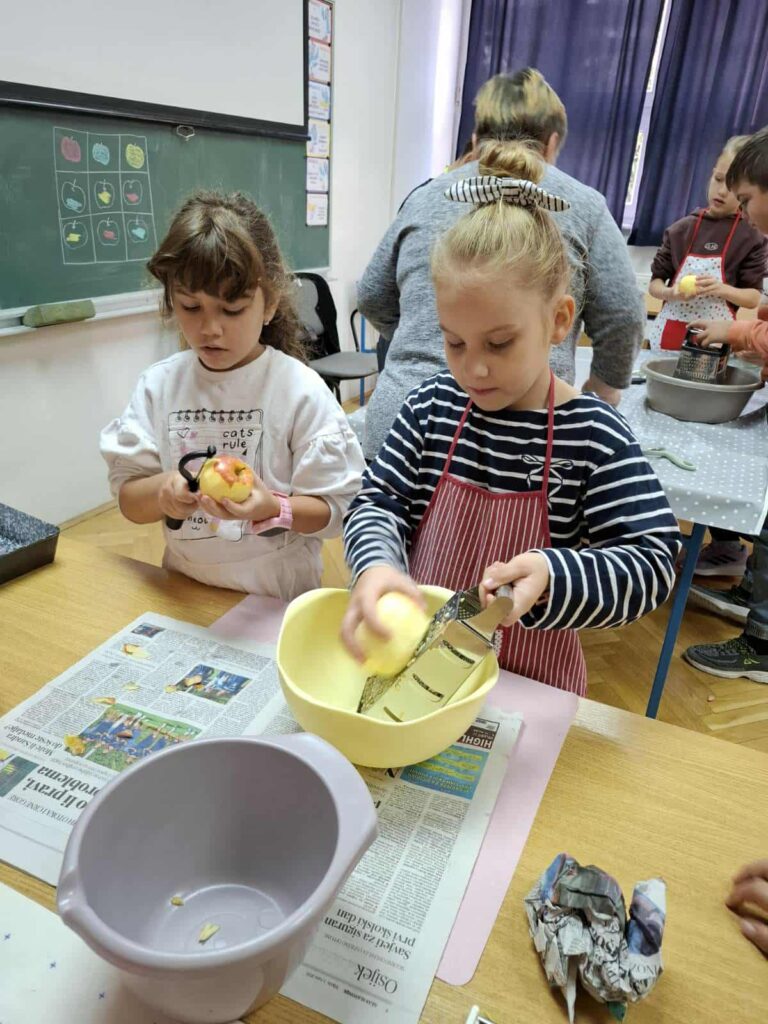 Učenici i učiteljice PŠ Punitovci Dane kruha obilježili su u utorak pečenjem kolača: sipana pita od jabuka, štrudle s jabukama i vafli.