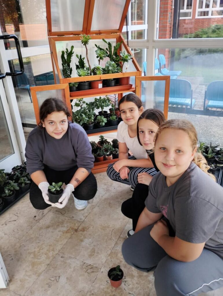 Opet smo bili vrijedni. Prvo smo sadili biljku zvanu drvo novca. Potom smo zalijevali biljke u plasteniku, a dio biljaka smo unijeli u školu da ih zaštitimo od hladnoće. Kad se male ruke slože – sve se može. Učiteljica Gordana nas zove cvjetićima i kaže da smo sjajna ekipica zelenih ruku.