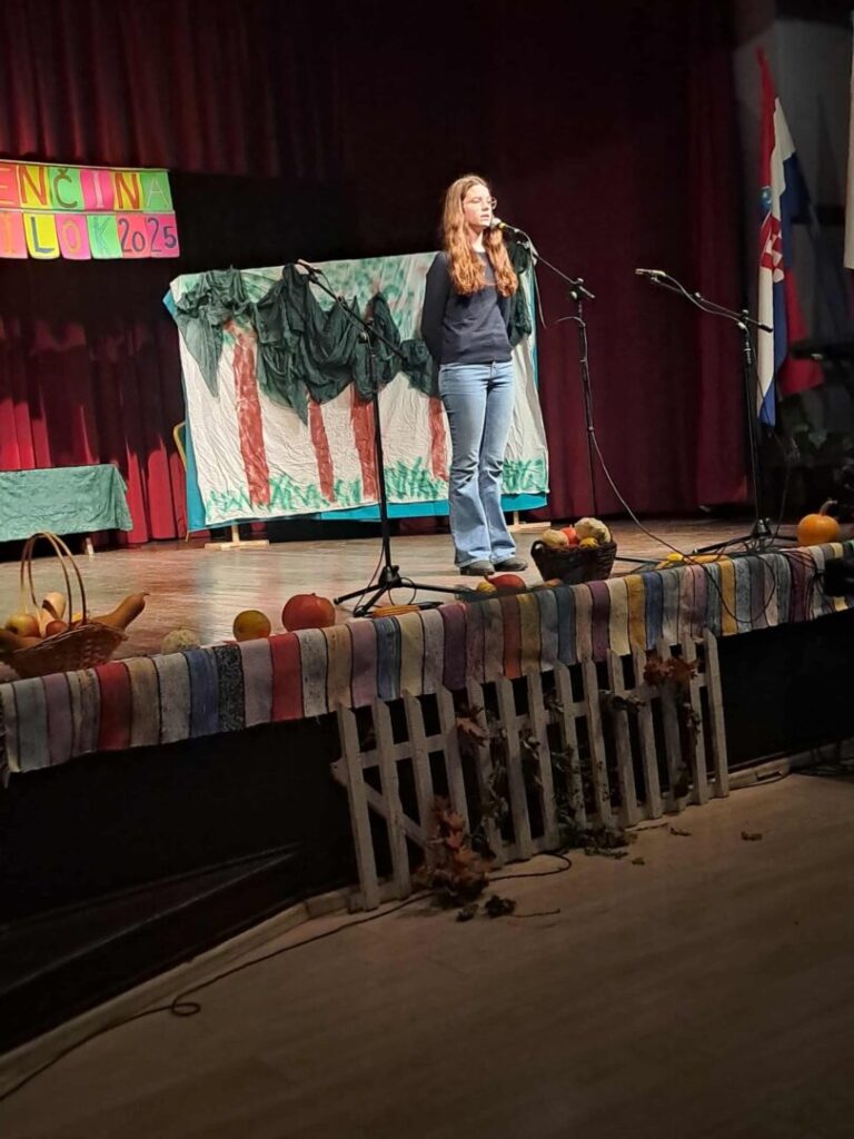 Učenice su recitirale pjesmice Ranená breza – Mária Rázusová i Jeseň plná krás – Lenka Šimková pod vodstvom učiteljice slovačkog jezika Ane Gašić.